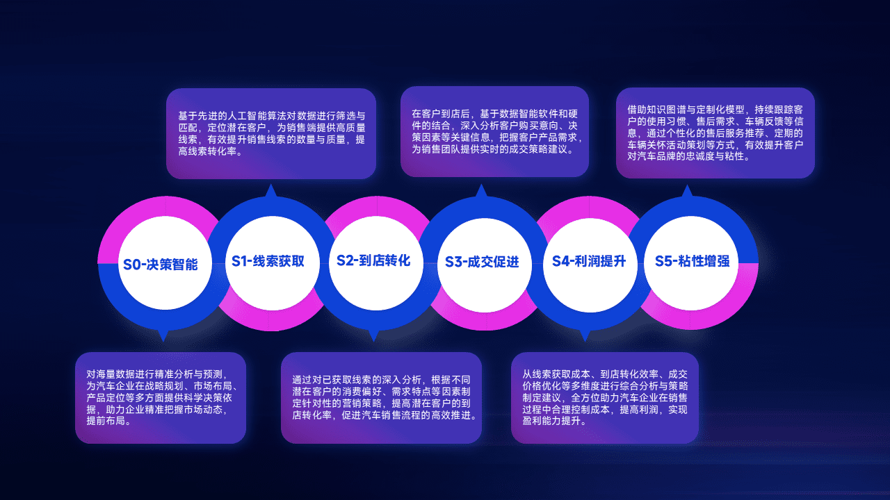通过拓宽潜在客户来源、、优化线索分配并提高到店转化率,,,以增强销售效率。。。同时,,利用线索数据不断优化分析模型,,有效提升转化率,,,扩大营销影响力。。。。